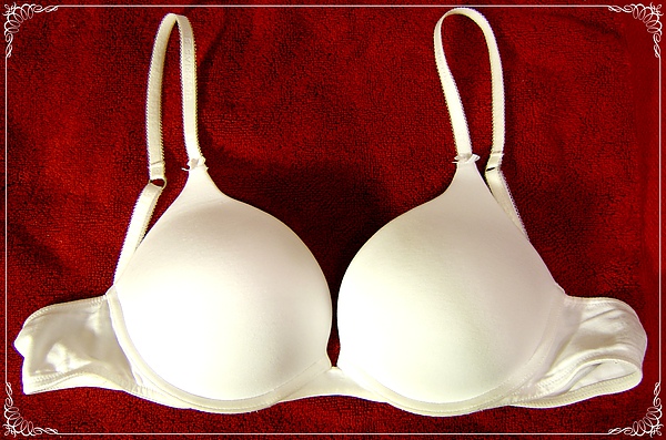 當初買這件內衣是為了搭某件白色貼身上衣. 由於是白色挖背上衣,布料不但貼身又有點薄,所以若穿深色的內衣,不但很明顯,也不太好看. 於是去 Victoria' Secret 逛逛,看到下圖這件內衣時,覺得它相當符合我的需求. 一來這件 bra 罩杯是光滑面,所以就算外頭穿了貼身的上衣,也不會因為 cup 上有蕾絲等等的圖案,透過上衣而顯露出來. 我有一件 bra 上頭有許多 stars 的圖型,而且是非平面的. 當初就是覺得好看才買的,沒想到穿貼身的衣服時,圖案都會透過衣服印出來,很不雅觀. 二來這件 bra 與其內襯是一體成型的,不像以前買過的 bra 做成可自由抽取式. 不但洗滌時方便,穿起來也比較舒服.