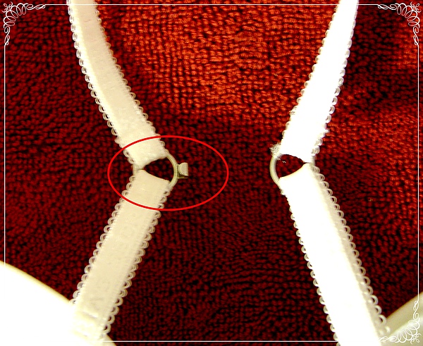 另外最讓我滿意的是,它背後有個特別的小抅子,經過店員介紹才知道我也可以把這個抅子抅到另一條 strap (肩帶)上,如此一來就變成 crisscross back 的 bra 了. 真是太方便了!