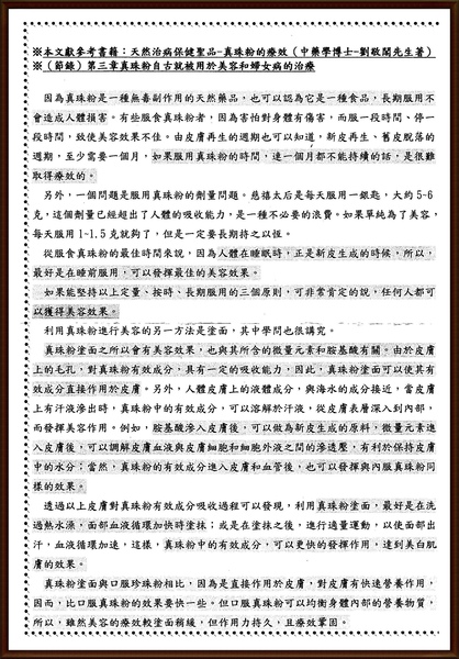 接下來是從參考文獻節錄下來的,內容談及珍珠粉的功效,和使用方式.
