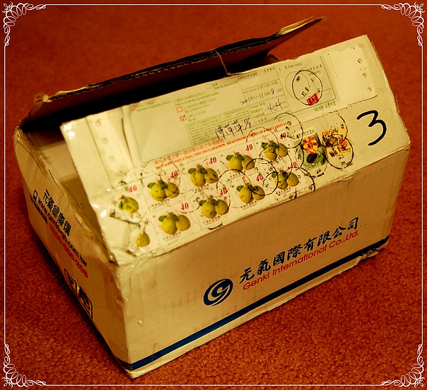 收到貨時,發現箱子上貼滿了 450 元的郵票,覺得很有趣. 也感謝她當天就幫我出貨了,很有效率呢~