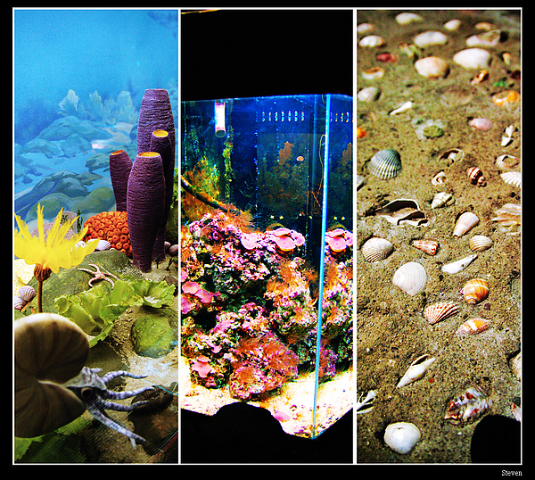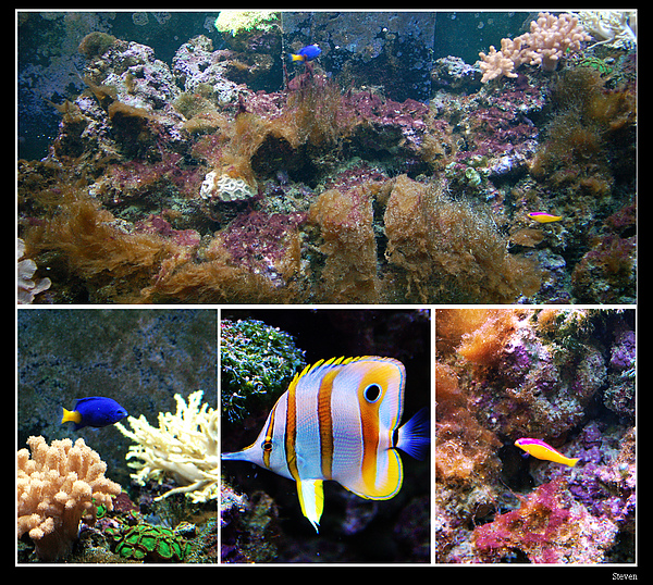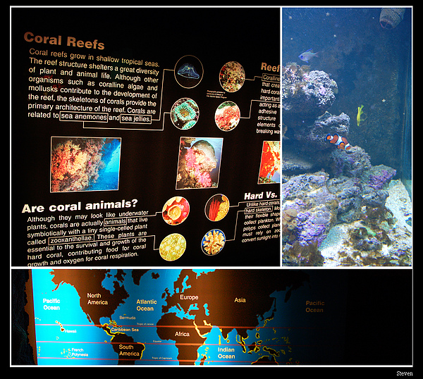 從外頭可以下樓梯進入地下海洋館,裡頭可以看珊瑚和魚. 還在想珊瑚到底是動物還是植物嗎? 牆上的說明已經給你答案囉~